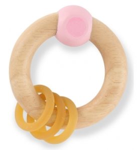 Die Holzrasseln von HEVEA sind Rassel und Beißring in einem. Es wurde aus 100 % natürlichen Rohstoffen, Holz und Gummi hergestellt. Das Gummi ist widerstandsfähig und gleichzeitig weich, weil es mit Bienenwachs bedeckt ist. Durch den Holzring ist das Beißring besonders leicht zu greifen und zu halten. Zusätzlich fördert es die motorischen Fähigkeiten.